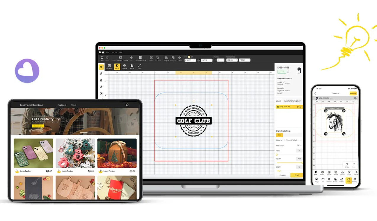 LP4 拥有 120mm × 160mm 的基础雕刻区域,是同级产品中最大的工作空间,满足你的基本需求,甚至超出预期。